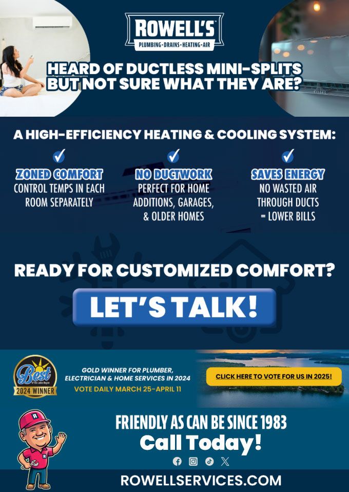 "Friendly As Can Be Since 1983!" When you need help with your plumbing, drains, heating, cooling or electrical in Concord, you can always rely on Rowell's Services! Call us now or book online!